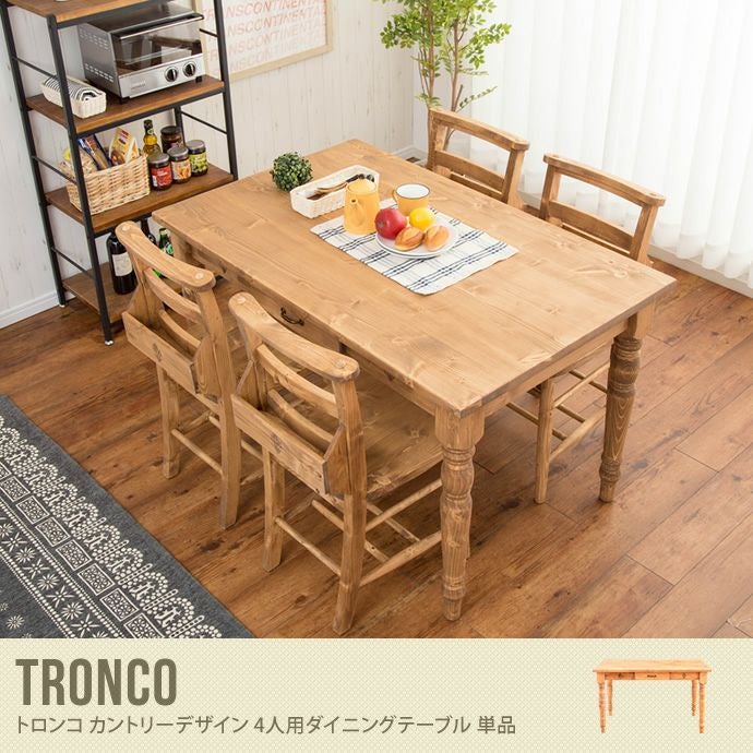 天然木の風合いが優しい印象のウッドファーニチャー「トロンコ カントリーライン」ダイニングテーブル。丁寧な削り出しが魅力で、使い込むほど木の味わいが楽しめます。