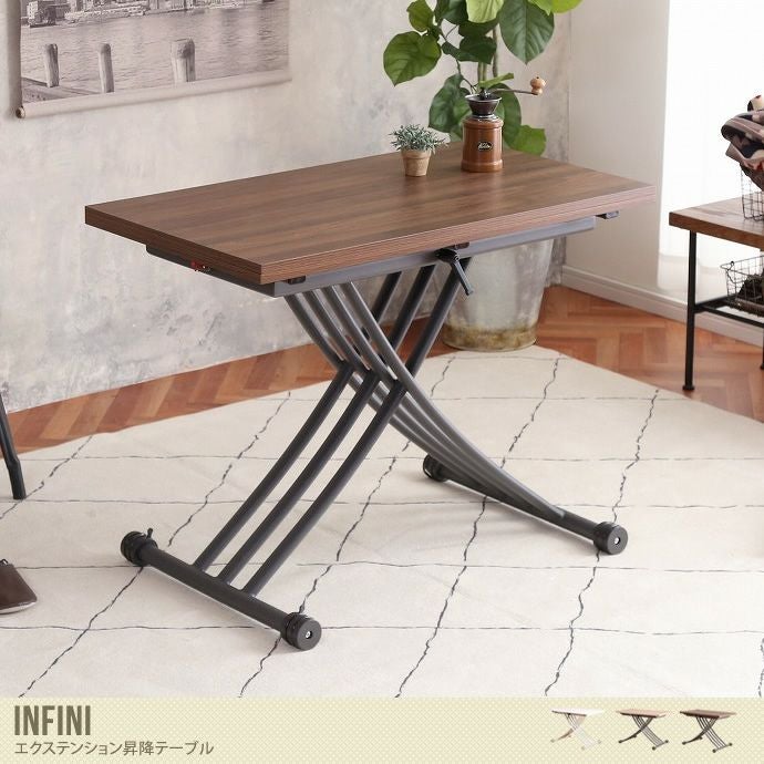 機能性・デザイン性に優れた『Infini』シリーズ。ローテーブルからダイニングテーブルまでさまざまな使い方がある、エクステンション昇降テーブル! ヴィンテージや北欧・モダンテイストまであらゆるテイストと相性バツグン◎ のんびりお茶をするのも良し、ソファに座ったままくつろぐも良し! お好きな高さに変えられるから、シーンに合わせて何パターンもの使い方があります。このテーブルがあれば、“一息”くつろげる空間を演出いただけます♪