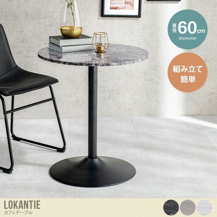 リアルな素材感を再現した石目調の天板とマットな質感のスチールの組み合わせが特徴の『Lokantie(ロカンティ)』シリーズのカフェテーブル。使いやすいコンパクトサイズなので置きやすく、癒しのカフェのような空間を演出できます。さらに、幅60cmのコンパクトなサイズ感は省スペースで置けるので、限られたスペースにも最適です。また、飲み物などをこぼしてしまってもサッと拭けてお手入れも簡単なので、安心してティータイムや食事をお楽しみいただけます。