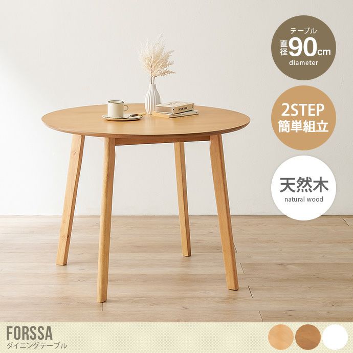 北欧を連想させるシンプルなデザインの『Forssa(フォルッサ)』ダイニングテーブル。天板は、直径90cmと広々としたスペース。食事や休息時など、シーンを問わずに使いやすい設計です。カラーはバリエーションが豊富なのでお部屋にあったお好きなカラーを選んでいただけます。