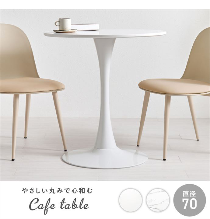 【送料無料】幅70 カフェテーブル ダイニングテーブル 丸テーブル テーブル おしゃれ おすすめ 安い 単品 円形 丸型 丸 ラウンド 一本脚 韓国インテリア 石目調 大理石調 一人暮らし かわいい コンパクト 食卓 1人用 マーブルホワイト