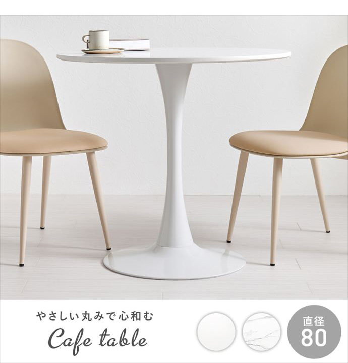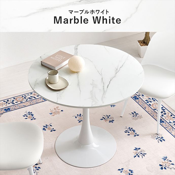 【送料無料】幅80 カフェテーブル ダイニングテーブル 丸テーブル テーブル おしゃれ おすすめ 安い 単品 円形 丸型 丸 ラウンド 一本脚 韓国インテリア 石目調 大理石調 一人暮らし かわいい コンパクト 食卓 1人用 2人用 マーブルホワイト