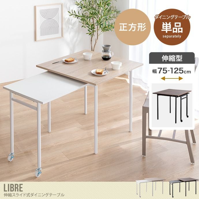 他の画像を見る 【送料無料】Libre リーブル 幅75 幅125 ダイニングテーブル 伸縮式 デスク 机 伸長 伸びる 拡張 スライド 正方形 スクエア 省スペース コンパクト ワイド リビング ワンルーム 2人用 4人掛け 1人暮らし 二人暮らし 単品 単体 キッチン 同棲 奥行75 エクステンション 角型 広々 食卓 ナチュラル 販売価格 ¥ 16,999 税込 送料込 カートに入れる お気に入りに登録する