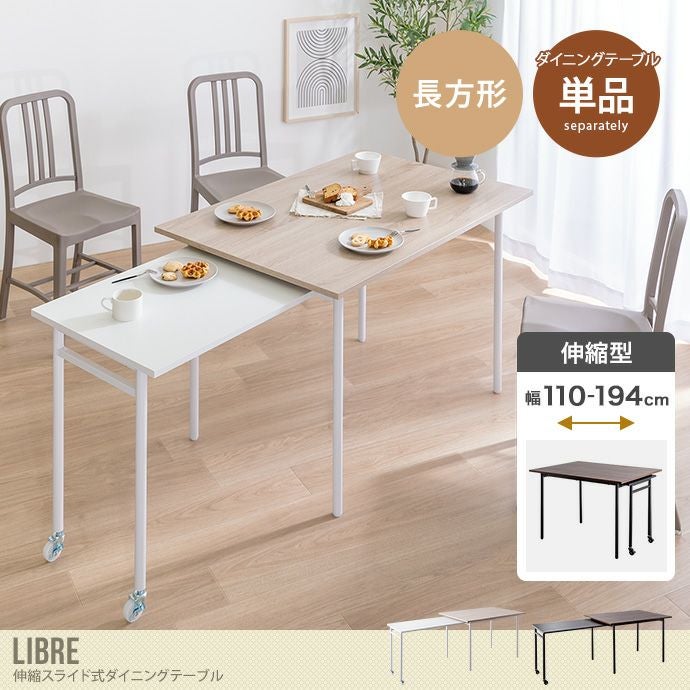 他の画像を見る 【送料無料】Libre リーブル 幅110 幅194 ダイニングテーブル 伸縮式 テーブル デスク 机 伸長 伸びる 拡張 スライド 長方形 コンパクト ワイド リビング 2人用 4人掛け 6人 1人暮らし 二人暮らし 単品 単体 キッチン 同棲 奥行75 エクステンション 角型 家族 ファミリー 広々 食卓 カフェ ワーク ナチュラル 販売価格 ¥ 19,999 税込 送料込 カートに入れる お気に入りに登録する