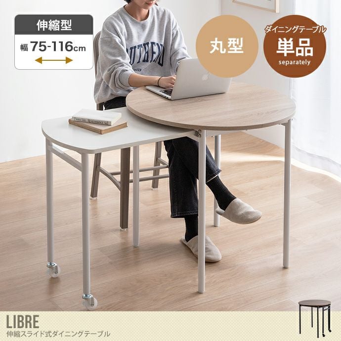 他の画像を見る 【送料無料】Libre リーブル 幅75 幅116 ダイニングテーブル 伸縮式 デスク 机 伸長 伸びる 拡張 キャスター 丸 ラウンド 省スペース コンパクト ワイド リビング ワンルーム 2人用 3人掛け 1人暮らし 二人暮らし 単品 単体 キッチン 同棲 奥行75 エクステンション 食卓 ワーク ナチュラル 販売価格 ¥ 15,999 税込 在庫切れ 送料込 カートに入れる お気に入りに登録する
