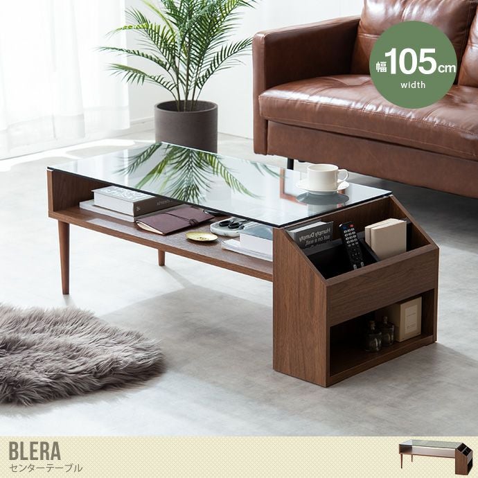 ガラス天板を使用したセンターテーブル『Blera(ブレーラ)』。グレーの強化ガラスと木目調の組み合わせが美しくお部屋に高級感を漂わせてくれます。天板下の収納は天板が透明感のあるガラス仕様になっているので、アクセサリーを飾ったり、本を並べてディスプレイ収納としてもお楽しみいただけます。また、サイドにも仕切りのついた収納がついている為、ごちゃつきやすい小物をキレイに整理することができます。オシャレなだけでなく、機能性にも追及した使い勝手のよい商品です。