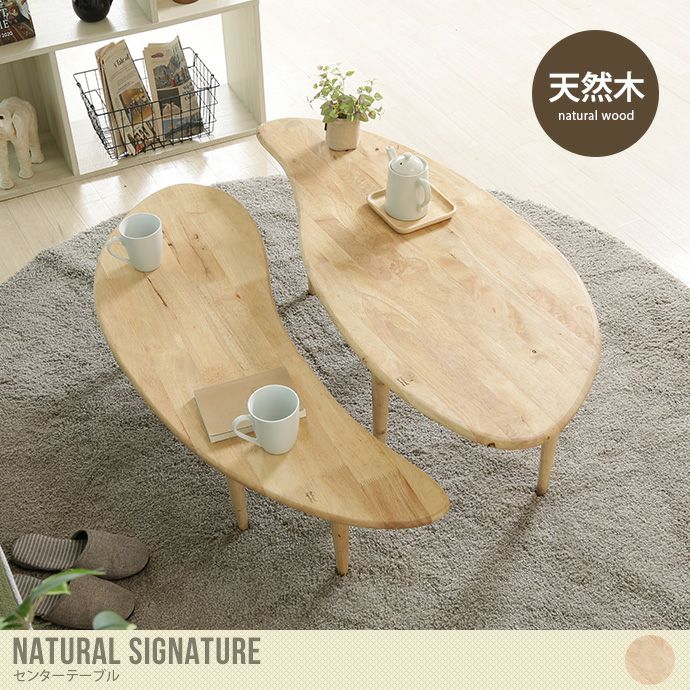 天然木ならではの優しい風合いを生かした『Natural Signature (ナチュラルシグネチャー)』シリーズからセンターテーブルが登場しました。大・小2つのテーブルは、ゆるやかな曲線が美しく、目をひくデザインです。2つのテーブルは高さが異なる為、様々なレイアウトで楽しむことができます。シーン別で大活躍間違いなしの商品です。