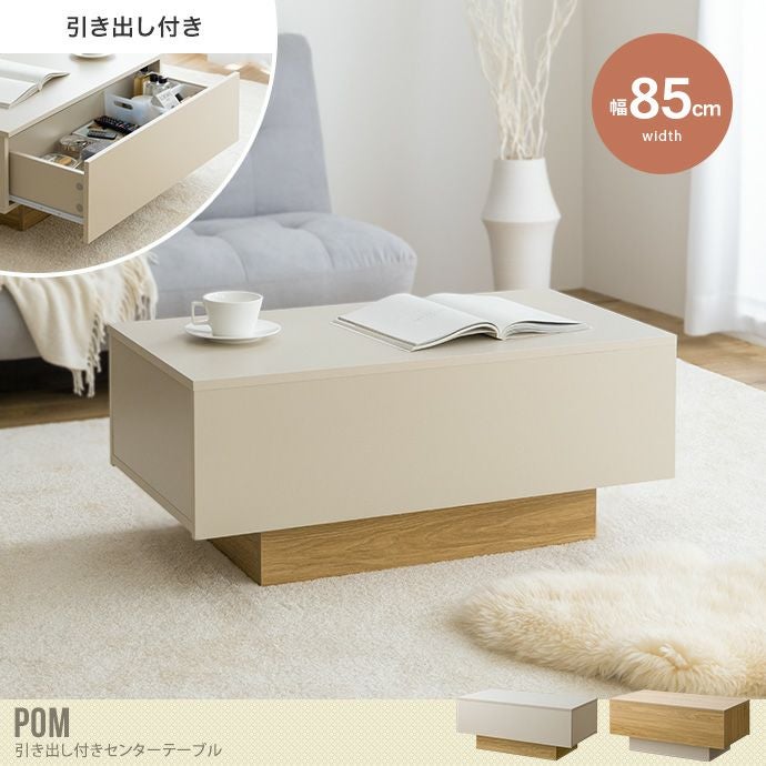 【送料無料】Pom ポム 幅85 テーブル センターテーブル リビング ロー 机 コーヒー フロート脚 引き出し付き 引出し コンパクト 省スペース グレージュ