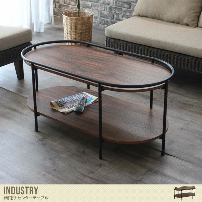 【送料無料】インダストリアル家具 ローテーブル 楕円形 100cm×50cm×45cm アイアンフレーム テーブル サイドテーブル 机 コーナーテーブル コンソール スチール アイアン ビンテージ アンティーク ブラック