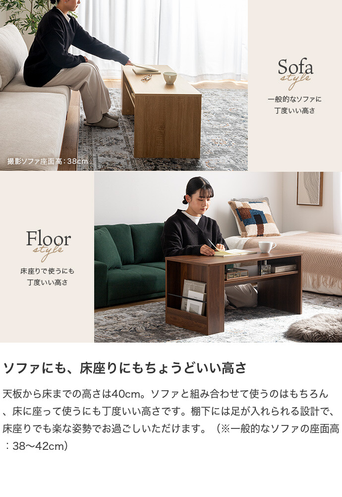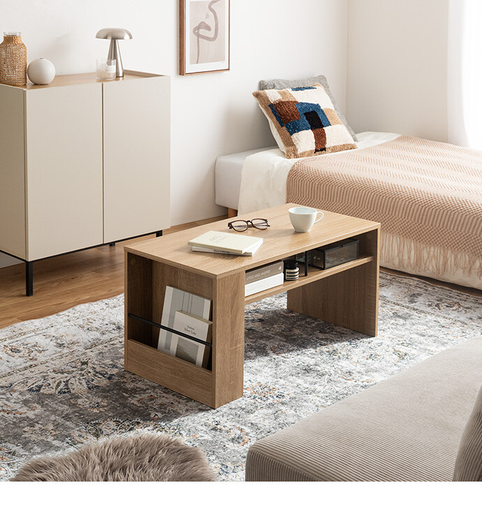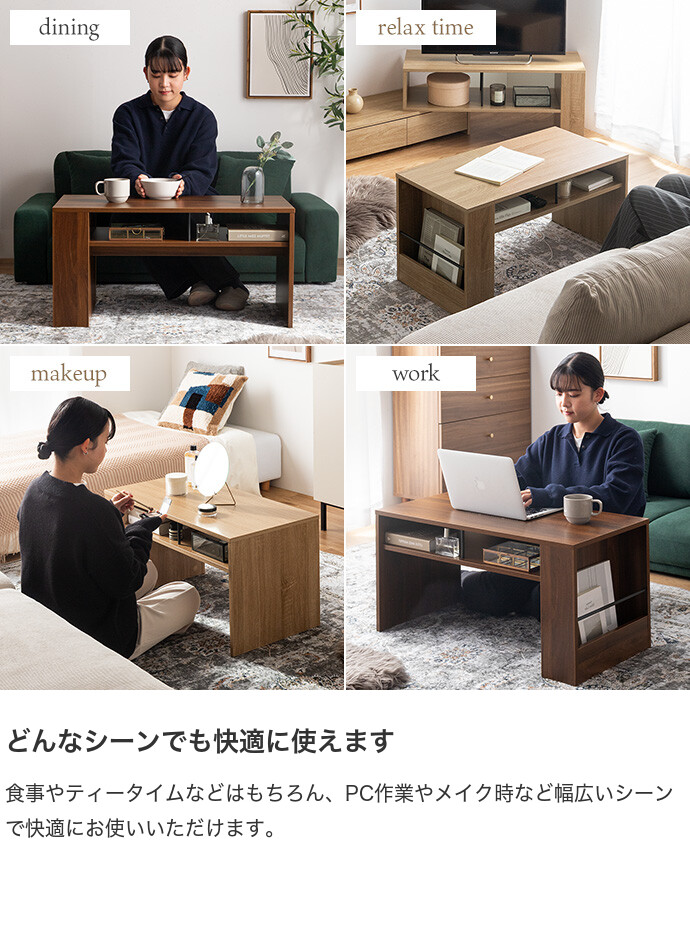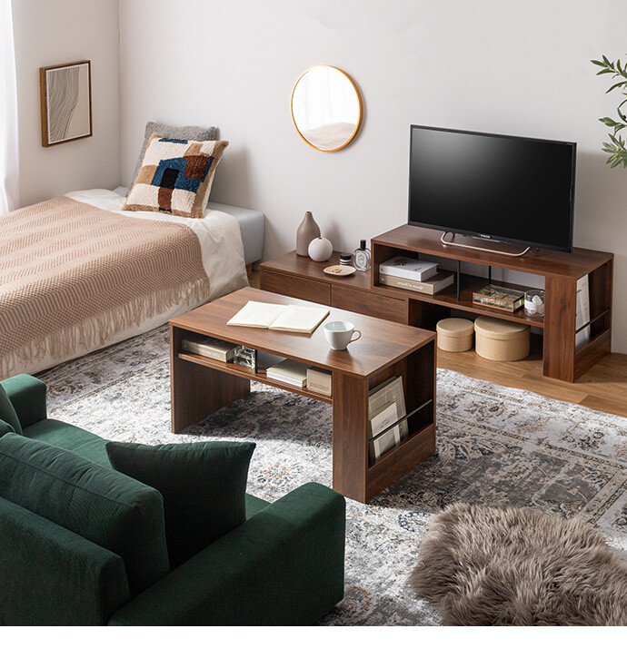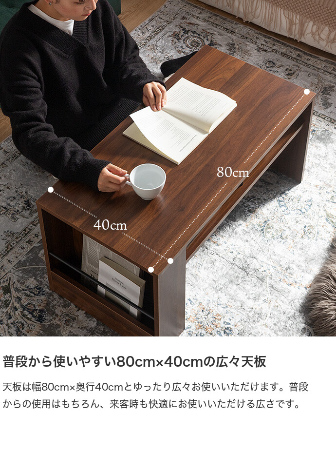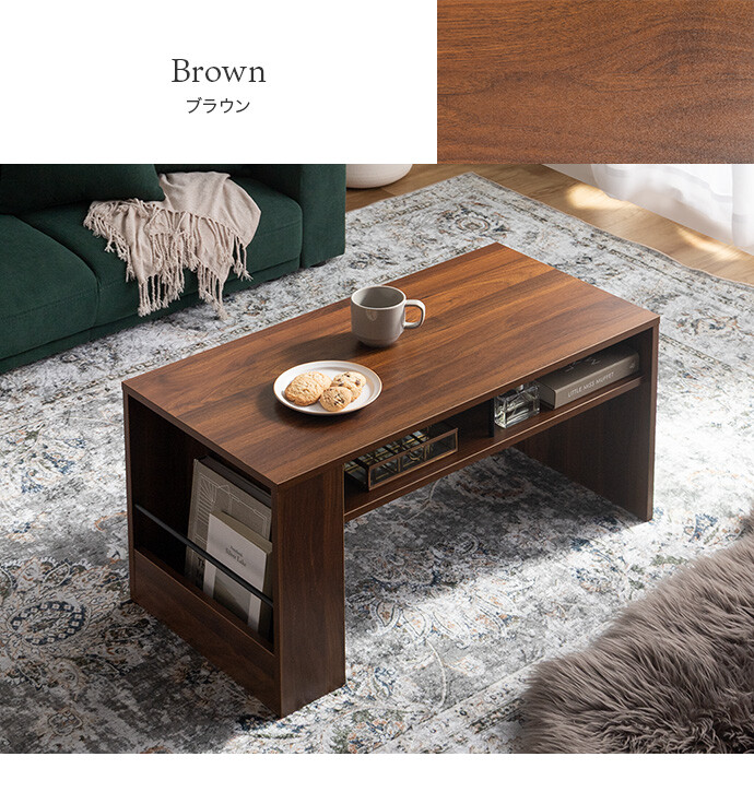 美しさと機能性を備え、お部屋に上質感と快適さをプラスする収納付きセンターテーブル。天板下の便利な収納が、散らかりやすいテーブル上をすっきり保ちます。また、サイドには好きな雑誌を飾れるマガジンラック付き。ロータイプのためお部屋に圧迫感を与えず、ワンルームにもピッタリです。