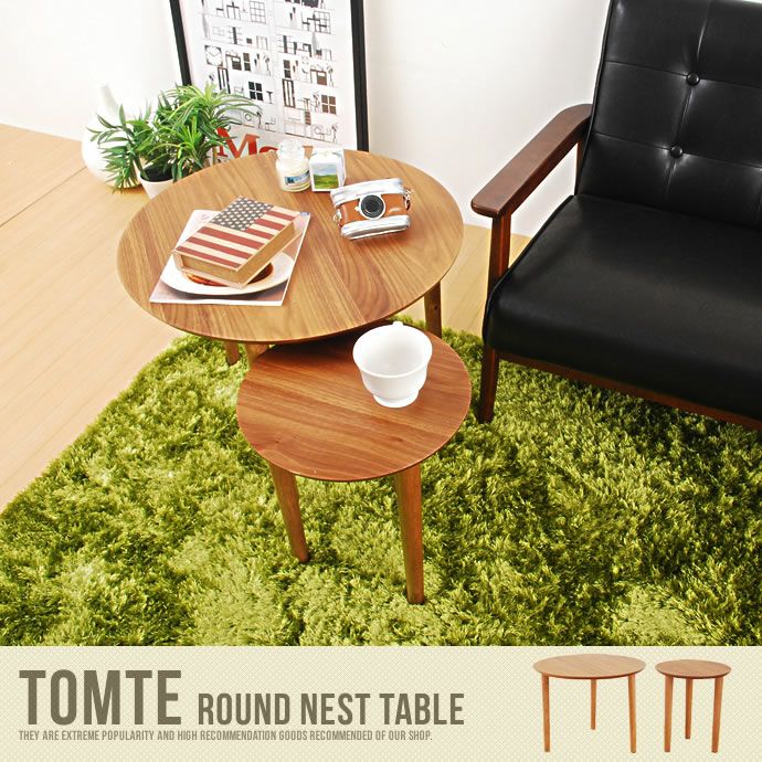 北欧風のシンプルデザインと、天然のウォールナットを組み合わせた、「Tomte(トムテ)」シリーズのラウンドネストテーブル。
