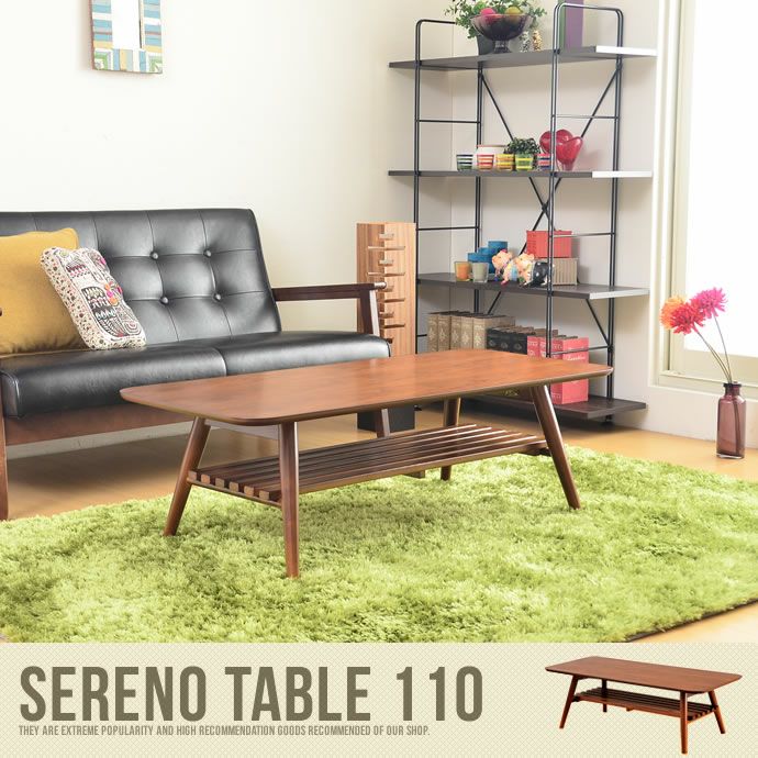 天板にウォールナット材突板を使用した質感の高い木目が特徴のリビングテーブル「SERENO テーブル 110」です。人気のカフェスタイルにぴったりです♪折りたたみ式なので、収納にも便利ですよ。