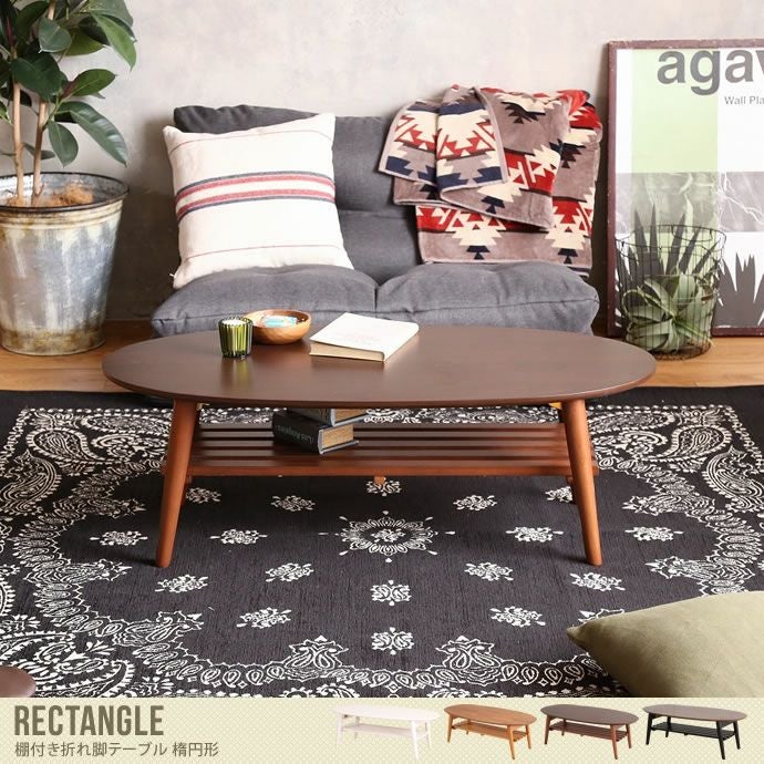 【送料無料】【幅100cm】折りたたみ 折れ脚テーブル 棚付き すのこ状の棚板 テーブル センターテーブル コーヒーテーブル リビングテーブル table 木製 北欧 シンプル モダン 完成品 楕円形 おしゃれ ホワイトウォッシュ