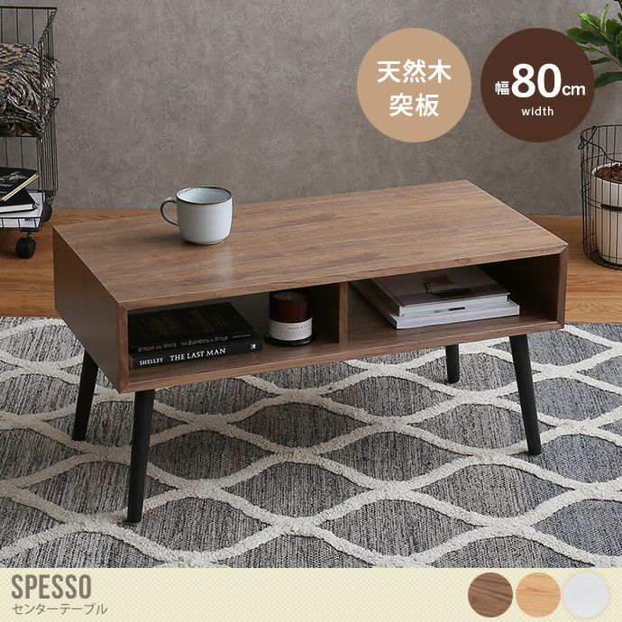 シンプルな定番デザインの『Spesso(スペッソ)』センターテーブル。天板下には棚が付いており、リビングでよく使うものを収納していただけるので、テーブル周りをスッキリときれいに片づけることができます。床に座ってもソファに座ってもちょうど良い高さになっているので、ゆったりのんびりと快適にお過ごしいただけます。幅80cmと使いやすいサイズ感で、ワンルームからプライベート空間まであらゆるシーンでお使いいただけますよ。