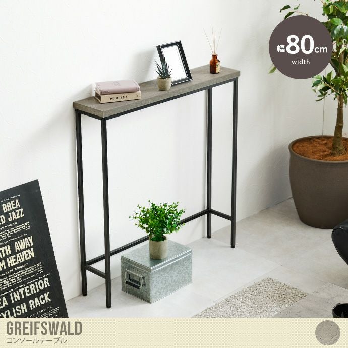 重厚感のあるコンクリート柄とスチールを組み合わせた『Greifswald(グライフスヴァルト)』シリーズから、コンソールテーブルが登場しました。本物のようなコンクリート柄の天板は厚みがあり丈夫なつくり。細身のスチール脚との組み合わせがスタイリッシュな雰囲気を演出します。場所をとらない奥行18cmとスリムなつくりなので、玄関先や廊下でもお使いいただけます。立ったまま、かがまずに物が取りやすい高さ85cmなので、フレグランスやマスクを置いたりと、一時置きや飾り棚としてもおすすめです。