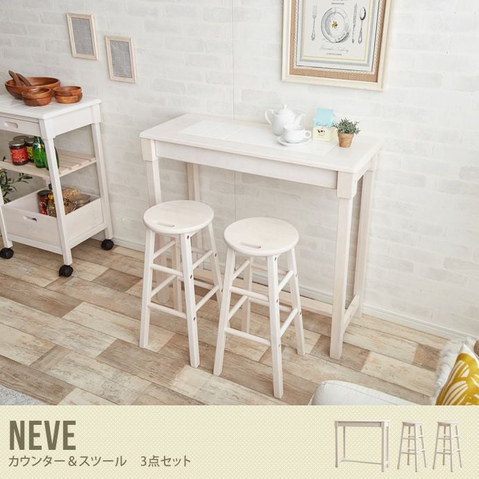 【送料無料】【Neve】 カウンター スツール セット カウンタースツールセット キッチンワゴン 家具 木 収納 おしゃれ リビング ホワイトル モダン 木製 角 組み立て 引き出し ホワイト