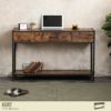 古材風プリント仕上げの本体とアイアンフレームの組み合わせで、ヴィンテージ感あふれるデスクが登場。フレームのコーナー部材や取っ手金具など細部にこだわった仕上がりで、無骨な中に温かみとが感じられます。またスリムでコンパクトサイズなのでお部屋に圧迫感を与えず、ちょっとした作業デスクが欲しい方におススメ!足元には棚が付いているので、ちょっと足を掛けたり、小物や雑貨などを置いてディスプレイを楽しむこともできます。