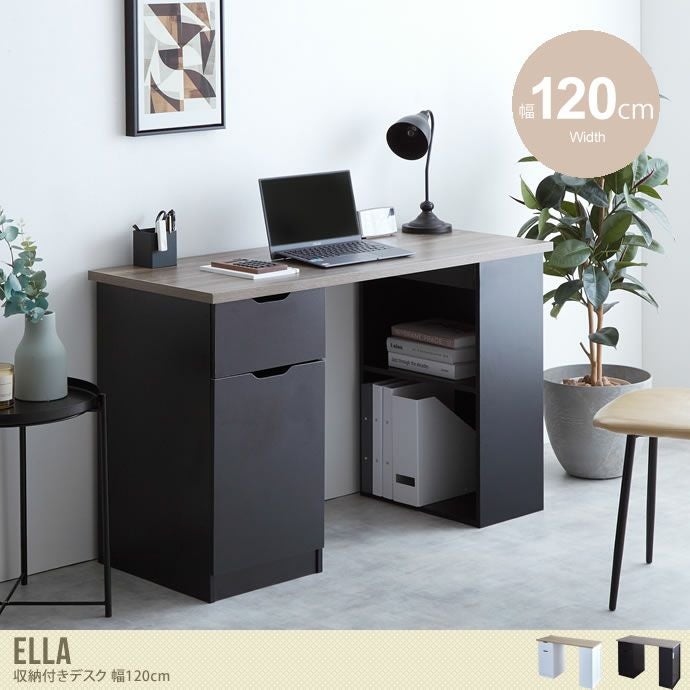 引き出し・開き扉収納・棚の3種類の収納スペースを備えた実用性の高い『Ella』収納付きデスク。文房具やコスメなどの小物から、A3・A4の書類やファイルまでスッキリまとめて収納することができます。席を立たずともデスク周りの必要なものに手が届くため、快適なワークスペースを実現できます。収納スペースが充実しているからこそ天板はすっきり片付き、作業スペースとして広くとることができます。