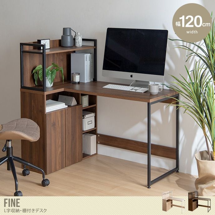 大容量収納でデスク周りがすっきり片付く、収納とデスク一体型の『Fine(フィーヌ)』L字収納・棚付きデスク。広々使えるワイドサイズの天板は、PCはもちろんモニターやプリンターを置いたり、書類を広げたりと様々な使い方が可能です。また、デスク横にはオープン収納と扉収納を備え、デスク周りに必要なものをすっきりと纏めることができます。