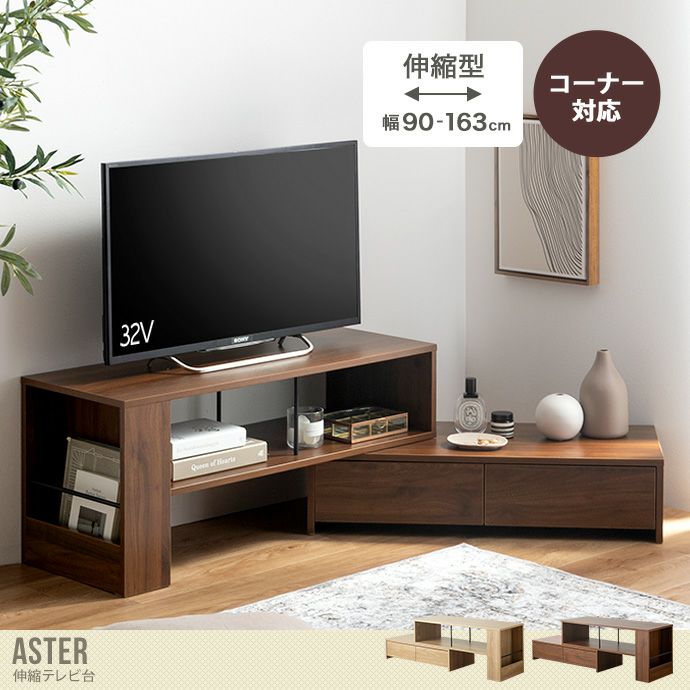 他の画像を見る 【送料無料】Aster アスター 幅90 幅163 テレビ台 テレビボード ラック ロー リビングボード おしゃれ おすすめ 安い 伸縮 引き出し 32インチ 24 コンパクト コーナー 自由自在 スリム 伸長 省スペース 収納 一人暮らし ワンルーム オープン ナチュラル 販売価格 ¥ 9,999 税込 送料込 カートに入れる お気に入りに登録する