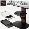 取り付け位置の「無段階調節」が可能な収納付きゲーム機棚板。引出しにはゲームソフトやコントローラーを、引出し下部の2段フックにはヘッドセットなども同時に設置できます。PS4 / PS4 PROにおすすめです。