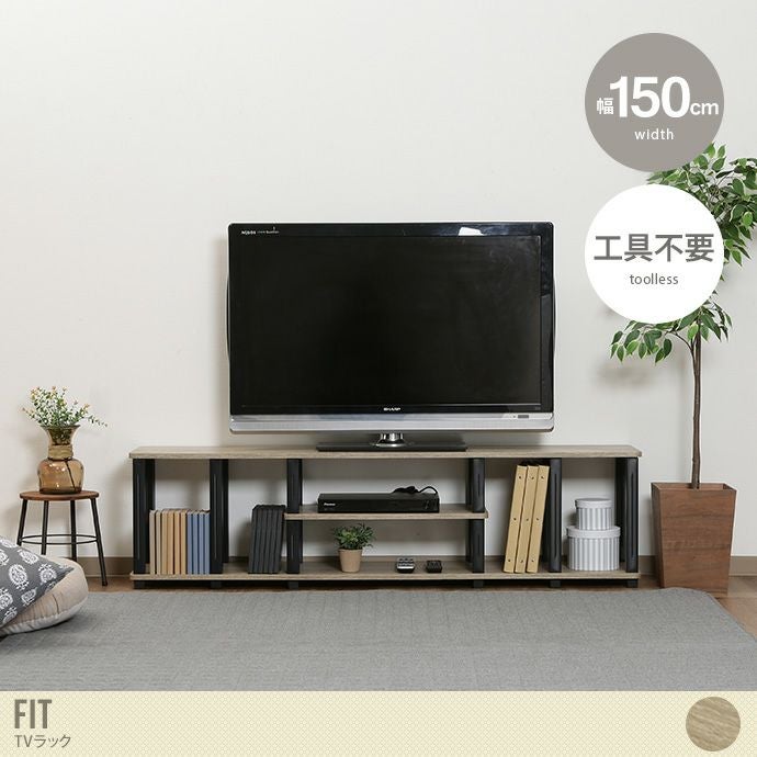 工具不要で簡単に組み立てられる『Fit TVラック』。オープンボードで配線収納もらくらく。ボード内の高さが34cmもある為、ラックを使っての収納やA4サイズの本やファイルまでアレンジ次第で自由にたっぷりと収納することができます。