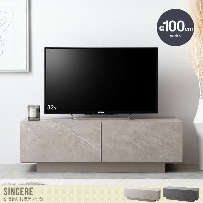 【送料無料】Sincere シンシア 幅100 テレビ台 ローボード TV おしゃれ おすすめ スリム コンパクト 収納 引き出し 吹き抜け 可動棚 コードスリット ルーター コード穴 フロート脚 ノイズレス 高級感 石目調 リビング 32型 インチ 一人暮らし ストーングレージュ