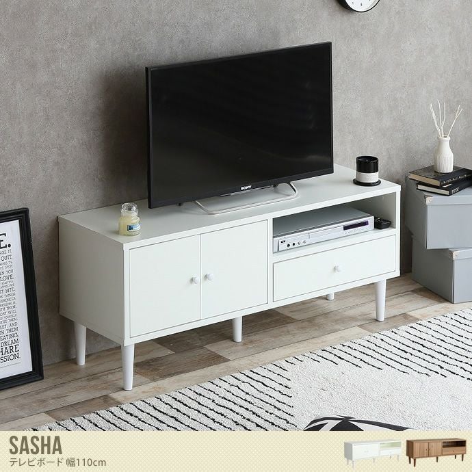 可愛らしいシンプルデザインの『Sasha』テレビボード。ワンルームにお住まいの方でも圧迫感なく設置いただけます。1~2人にちょうど良いサイズ感で、すっきりとお使いいただけますよ。清潔感を演出してくれるホワイトと空間に馴染みやすいブラウンの2カラーです。また、テレビボードだけでなくディスプレイボードとしても使えるので、あらゆるシーンで活躍します。