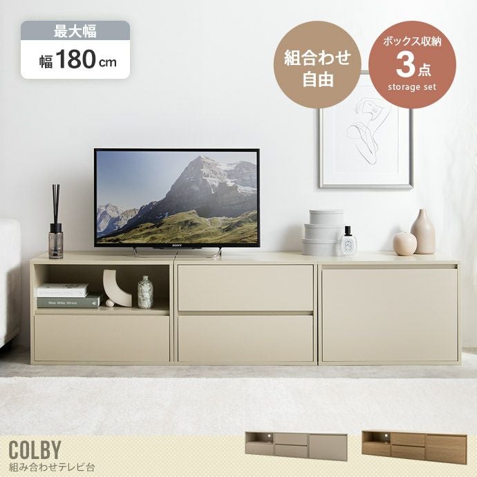 【送料無料】Colby コルビー 幅180 テレビ台 TV台 ユニット 収納 カラーボックス チェスト ローボード キャビネット 引き出し 組み合わせ 大容量 リビング キッチン ラック 60 120 180 ワイド 一人暮らし ワンルーム 小さめ 省スペース グレージュ