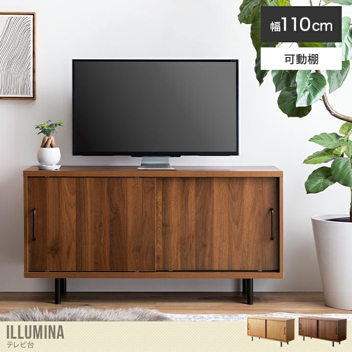 【送料無料】Illumina イルミナ 幅110 テレビ台 テレビボード TVボード ローボード ハイボード TV台 テレビラック AVラック オーディオラック おしゃれ おすすめ 安い 収納 棚 可動棚 扉付き 引き戸 木製 32型 43型 かっこいい コンパクト ナチュラル