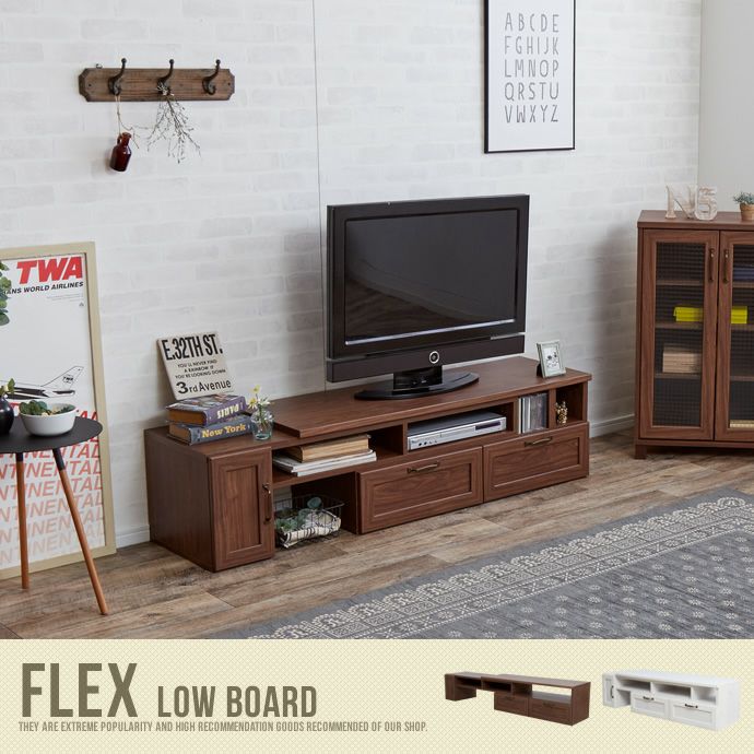 【送料無料】FREX LOW BOARD ローボード テレビボード テレビ台 TVボード TV台 スライド式 伸縮 ホワイト