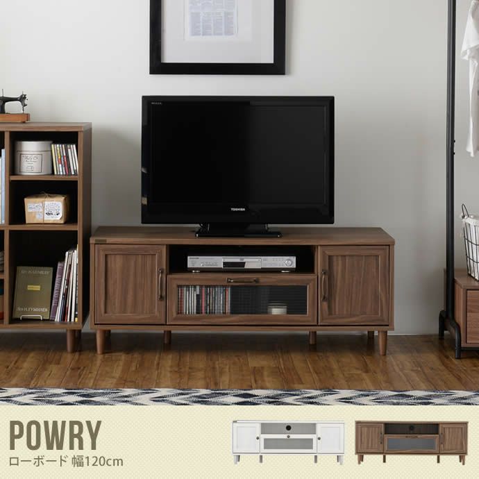 ワンルームでも安心してお使いいただけるコンパクト設計の『Powry ローボード 幅120cm』が登場しました!味のある木目やアンティーク調の取っ手がお部屋をオシャレに演出しくれます。コンパクト設計ながらも3種類の収納スペースがしっかりとテレビ周りを整理整頓してくれるのでとっても便利です♪爽やかで可愛らしいホワイトと、美しい木目が落ち着きのあるブラウンの2色展開でお部屋の雰囲気に合わせてお選びいただけます。
