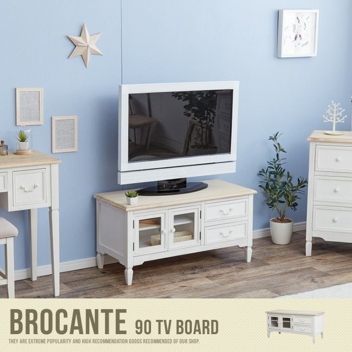 ガーリーでフェミニンなデザインのテレビボード「BROCANTE 90 TV BOARD」。女性の方のお部屋にピッタリなデザインです!