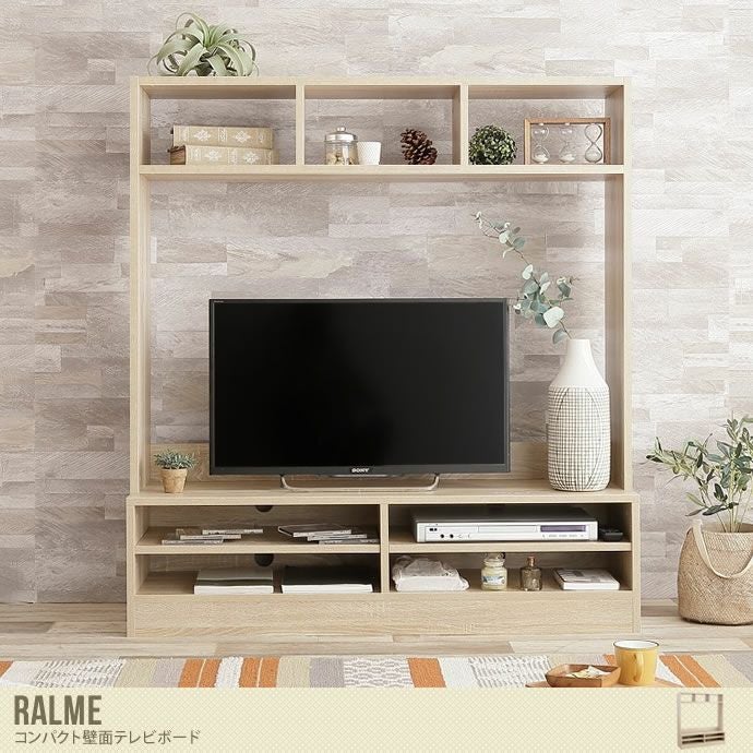 コンパクトデザインが嬉しい!『Ralme(ラルム)』コンパクト壁面テレビボードが登場しました。幅120cm・奥行39cmとスリム&コンパクトでありながらも、たっぷりの収納力を実現。下段オープンスペースにはAV機器、CD・DVDを収納、そして、上段オープンスペースには雑貨を飾ることができるので、自分だけのオリジナルディスプレイをお楽しみいただけますよ。