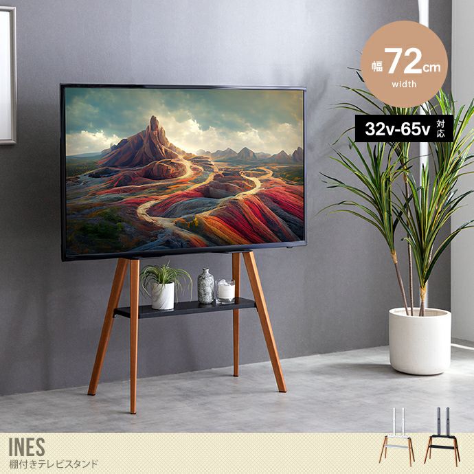【送料無料】Ines イネス 幅72 テレビスタンド テレビ台 テレビボード ラック 棚付き 壁掛け 壁寄せ イーゼル TV 脚 アート 配線隠し 自立 コード コーナー 省スペース スタイリッシュ スマート 軽量 収納 インチ v 型 ロー ホワイト