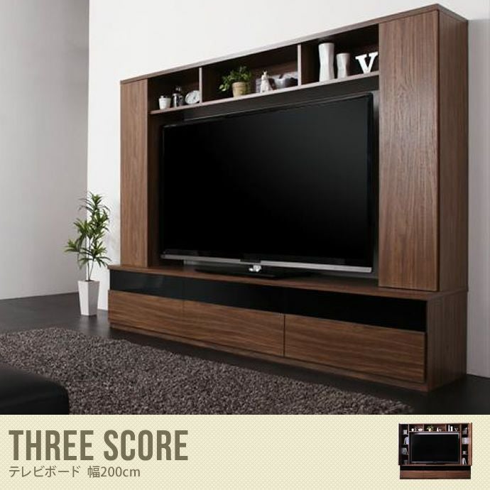【送料無料】【three score】 テレビボード TVボード ハイタイプ 200cm スリースコア 大型 ブラウン 省スペース リビング 収納 木目 ウォルナット 組立式 お洒落 かっこいい シック 高級感 60型 ワイド シネマリビング ブラック ブラウン