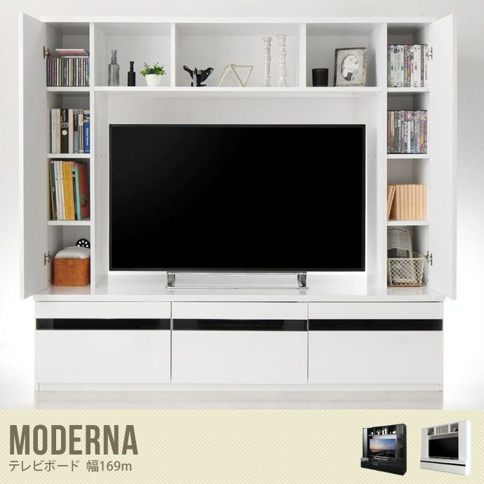 【送料無料】【MODERNA】 テレビボード ブラック ホワイト ハイタイプ モデルナ テレビ台 鏡面 モノトーン 高級感 収納 白 黒 かっこいい お洒落 リビング 洗練 大人 組立式 シンプル TVボード TV台 シャインホワイト