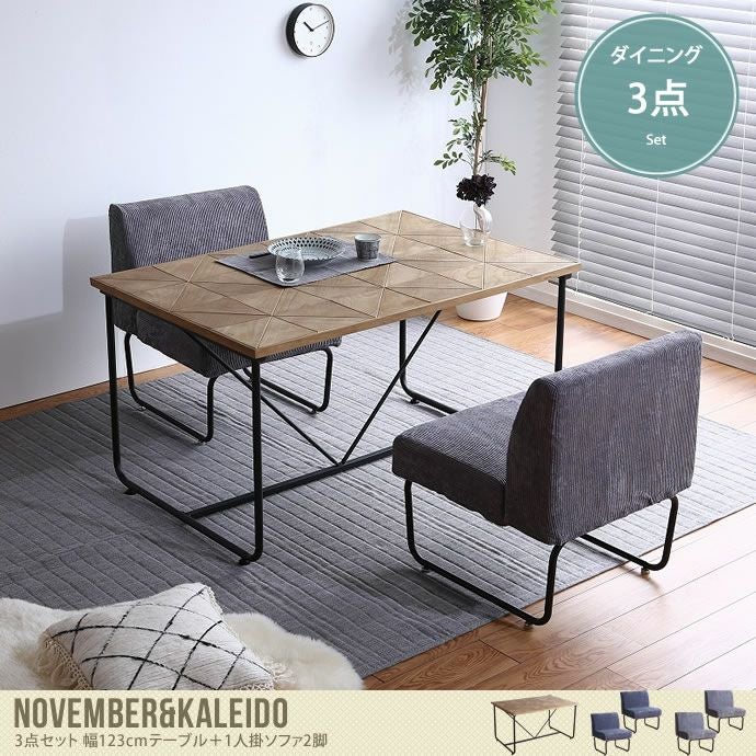 【送料無料】【3点セット】 ダイニングセット ダイニングテーブル ダイニングテーブルセット 食卓テーブル ダイニング 食卓 ダイニング3点セット チェア 2人用 123cm幅 ソファダイニング ソファダイニングセット コンパクト ヴィンテージ シンプル アイアン グレー ブルー グレー【コーデュロイ】