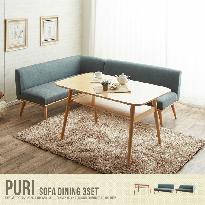 【送料無料】ダイニングセット 北欧 ソファ 3点 無垢 ロー 木 木製 モダン ナチュラル カフェ ブルー