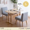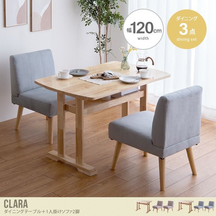 天然木の上質感とあたたかみ溢れる『Clara(クララ)』シリーズの、ダイニング3点セット。生活感を隠す棚を備えたダイニングテーブルは、繊細な木目が美しい天然木を使用し、いつもの食卓を上品に演出します。また、コンパクトながらもきちんと座れる機能性抜群の1人掛けダイニングソファが2脚つき。ご家族やご友人を招いて食卓を囲むシーンでも大活躍します。ソファは撥水加工が施されており、水に濡れてしまってもお手入れが簡単にできます。