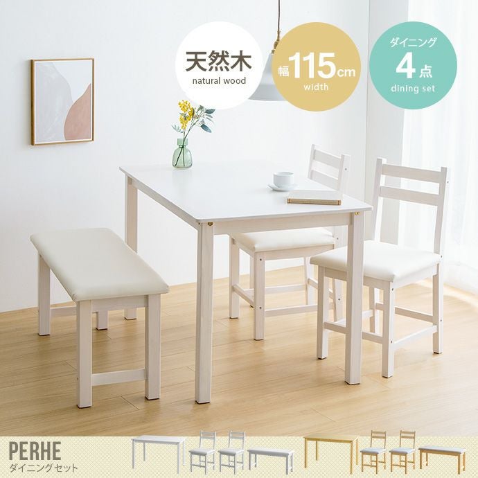 【送料無料】Perhe ペルヘ 幅115cm ダイニングセット ダイニング ダイニングテーブルセット 4点セット 4人掛け 4人用 ダイニングキッチン オシャレ ダイニングテーブル ダイニングチェア 食卓 リビング 天然木 在宅 リモートワーク 軽量 テーブル 椅子 イス ホワイト