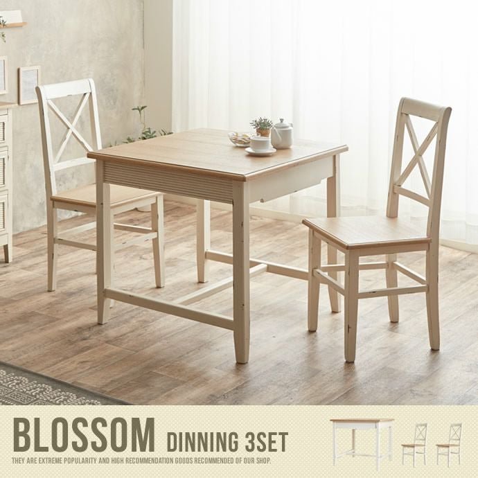 【送料無料】Blossom ダイニングテーブル2人用 3点セットダイニングテーブル2人用 3点セット 2人用 オフホワイト