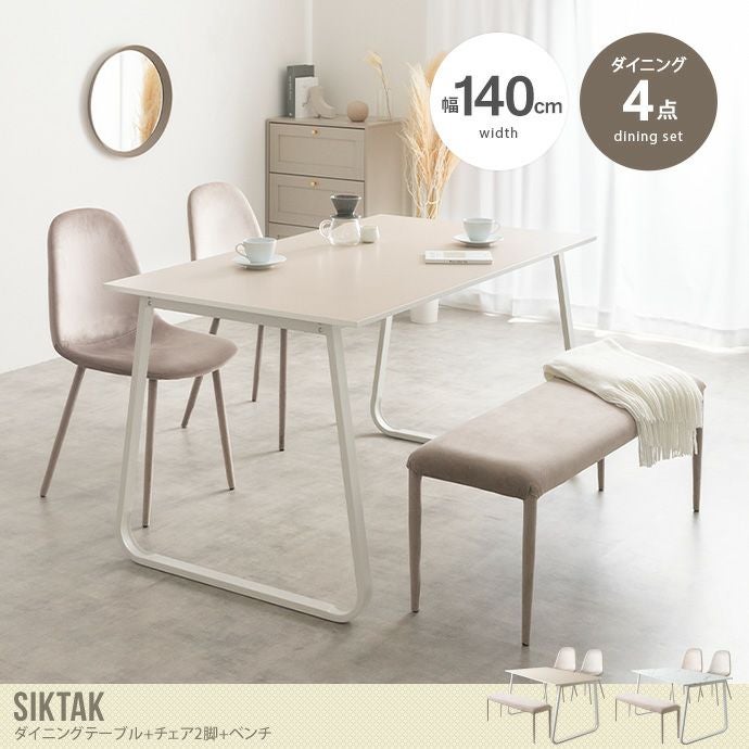 【送料無料】Shiktak シクタク 幅140 ダイニングセット テーブル チェアー ベンチ 食卓 リビング キッチン 4点 カフェ 椅子 イス いす 長椅子 4人掛け 大理石柄 バイカラー ベロア 3人掛け 机 ファミリー用 2人暮らし ロの字型 コの字 長方形 ベージュ