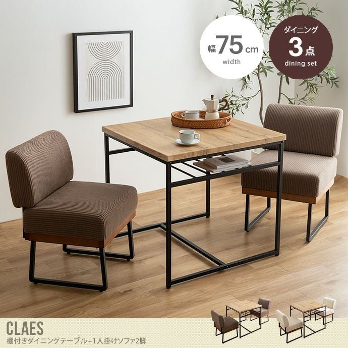 【送料無料】Claes クラース 幅75 ダイニングセット 3点セット 食卓 机 ソファー チェアー 椅子 おしゃれ おすすめ 収納 棚付き 正方形 コンパクト 省スペース 木目 黒脚 カフェ リビング ダイニング 食卓 一人暮らし ワンルーム 同棲 モカ