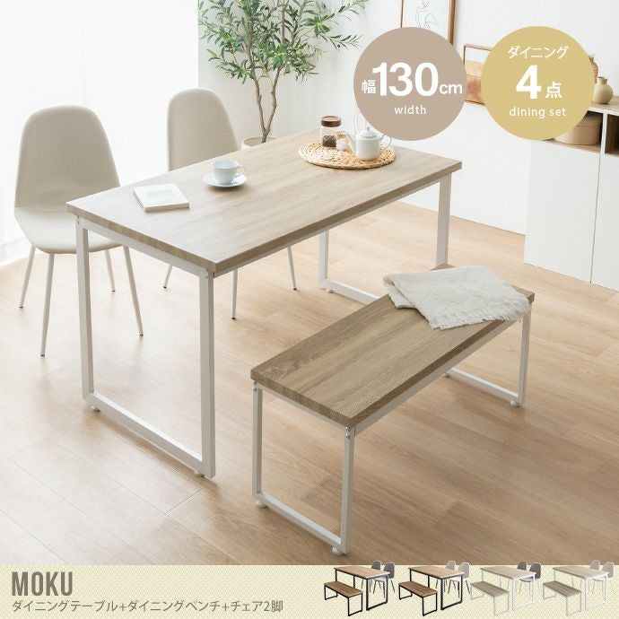 【送料無料】Moku モク 幅130 ダイニングセット テーブル おしゃれ おすすめ 安い 机 食卓 キッチン 長方形 チェア ベンチ コンパクト 奥行70 4点 木目 スクエア脚 リビング ファミリー 広々 PC 在宅 2人 3人 4人 作業 ナチュラル/グレージュ