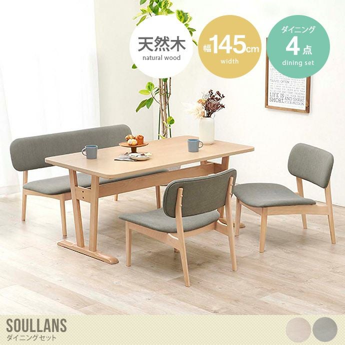 空間が広く感じられる低めのダイニングセット『Soullans(スラン)』。なめらかな手触りの天然木を贅沢に使用しており、明るく繊細な木目を楽しめます。天板は広々としていて大人が4人座ってもゆったりとくつろげる大きさです。また、テーブル脚底にはがたつき防止のアジャスターがついており、角も丸いデザインの為、小さなお子様がいる家庭でも安心してご利用いただけます。