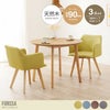 ファブリック×天然木の温かみのある風合いで、北欧を連想させるシンプルなデザインのダイニング3点セット『Forssa(フォルッサ)』。チェアの背もたれは高さを低めに設定している為、お部屋の圧迫感を軽減してくれます。さらに天板は、直径90cmと広々としたスペース。食事や休息時など、シーンを問わずに使いやすい設計です。カラーはバリエーションが豊富なのでお部屋にあったお好きなカラーを選んでいただけます。
