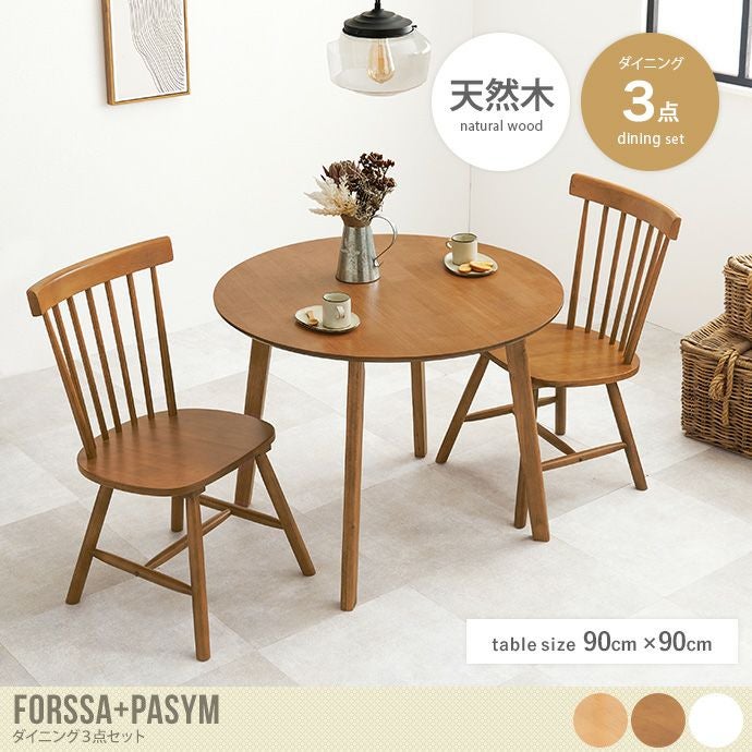 北欧風デザインがお洒落な『Forssa(フォルッサ)』と『Pasym(パシム)』からダイニング3点セットが登場しました。Forssa(フォルッサ)の天板は、直径90cmと広々としたスペースで食事や休息時など、シーンを問わずに使いやすい設計です。Pasym(パシム)はイギリスで古くから愛されるウィンザーチェアで、ナチュラルでシンプルなデザインながら、お部屋に馴染みやすく、日常の様々なシーンに溶け込んでくれます。