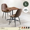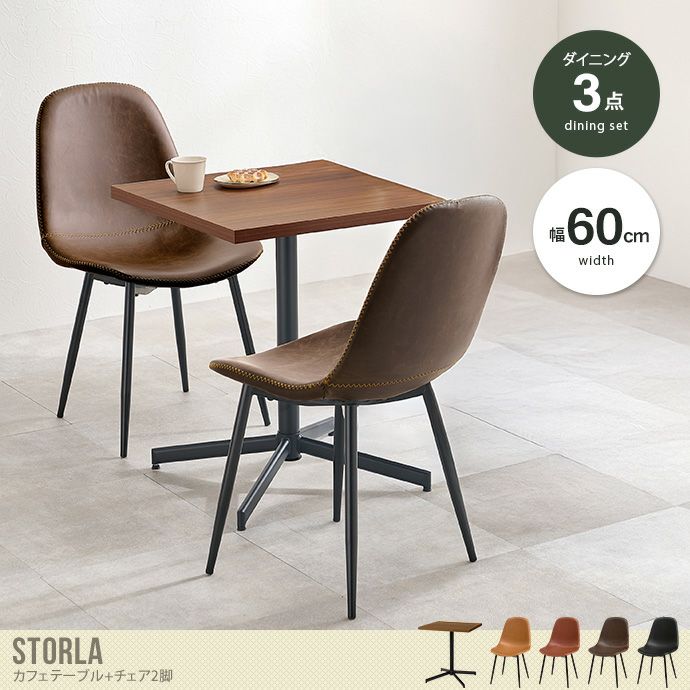 重厚感ある天板にスッキリとした1本脚を合わせたテーブルとレザー風のチェア二脚がセットになった『Storla(ストーラ)』カフェテーブルセット。コンパクトなサイズ感なので一人暮らしのお部屋にも置きやすく、カフェに居るような落ち着いた空間に。ブラックなスチールの脚とリアルな石目調と木目調を表現した天板は異素材のコントラストでスタイリッシュさを演出します。