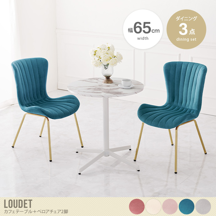 ベロア調生地のチェアと、リアルな大理石調天板のカフェテーブルを合わせた『Loudet(ルデ)』テーブルセット。上品で大人かわいい組み合わせは、お部屋をまるでホテルラウンジのような特別感のある空間に。またコンパクトながら機能的なテーブルと快適な座り心地のチェアが、日常に上質なくつろぎ時間をもたらします。